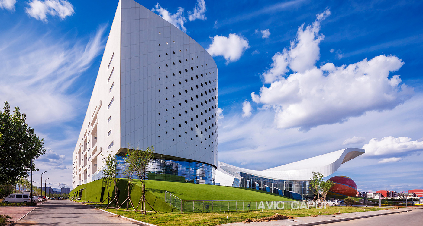 Características: el centro abarca 9 salas de ensayo( escena de 1200 asientos), teatro, sala de música, sala de instrumentos musicales, sala de manufacturación de accesorios, sala de vestuarios, sala de archivos, almacén, oficinas, sala de reunión y zona de servicio cotidiano,etc. Se inspira por los factores artísticas típicas de Mogolia interior, se da el sentido rómantico de la estepa plasmando las nubes blancas en el cielo azul y pastor verde.
