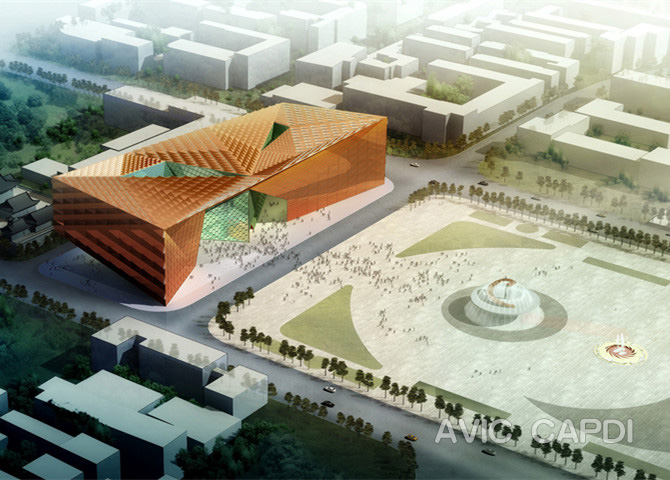 "Diamante do ouro" novo Chengdu Museu Municipal ocupa uma área de 72 000 metros quadrados, cobra uma área inteira oeste de Pra?a Tianfu. Edifício está rodeado por uma camada de placa de liga de cobre sólido, rodeado por uma camada exterior do tipo de rede "véu" transparente, de modo que a camada exterior tem uma cor dourada profunda."à noite, a grade será mais transparente, a luz dourada se espalhar, para projetar o fundo de Sichuan jogo de sombra tradicional " no interior do edifício usa uma variedade de cortes e orifícios para definir, uma camada de placa de cobre será trazido à luz e paisagem em camaras.