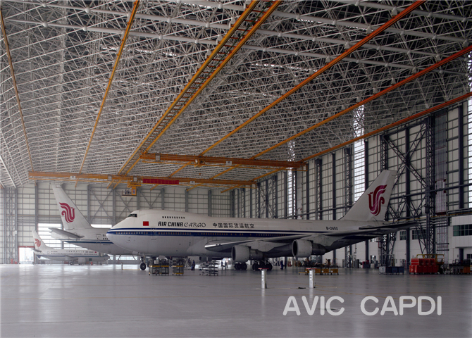 Размер ангара: (176м+176м) × 110м × 30м (длина пролета, глубина, высота нижнего пояса) Способность ремонта: Ремонт авиалинии Строительная площадь: 64285кв.м Земельный участок: 50500кв.м Дата завершения: 2008г. Особенность данного объекта: Длина пролета данного ангара является самой большой в мире. Объект для обеспечения олимпийских игр 2008 в Пекине. Объект, который получил приз девятого конкурса Чжань тянью по гражданскому строительству в Китае. Высота стеллажа для сетей только 8.0м. В ангаре можно располагаются 6шт широкофюзеляжных воздушных судов, например А380 и B747-400, и одновременно располагаются 4 узкофюзеляжные воздушные судна.