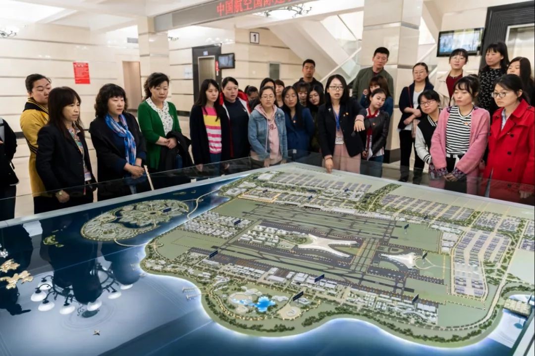 離開智能制造物理模型線,教師團(tuán)來到了民航機(jī)場(chǎng)展示沙盤旁,聽取了關(guān)于機(jī)場(chǎng)各區(qū)域設(shè)計(jì)布局等相關(guān)知識(shí)的介紹,對(duì)機(jī)場(chǎng)設(shè)計(jì)知識(shí)有了初步的認(rèn)識(shí)。
