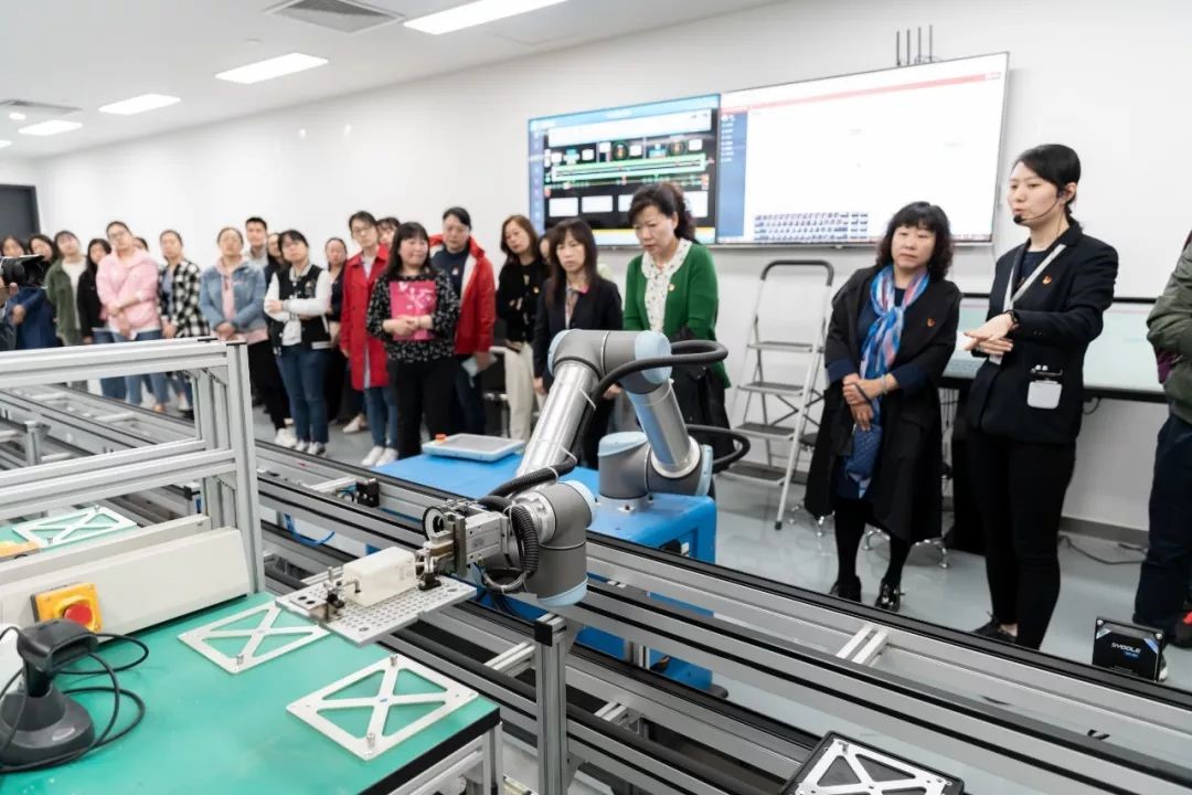 作為智能制造新技術(shù)的應(yīng)用,教師團(tuán)參觀了智能制造物理模型線