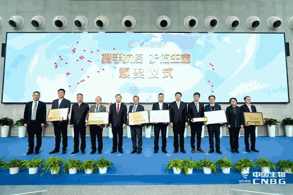 “國藥中生北京所”)舉行。會(huì)上,國藥中生北京所向公司授予“攜手抗疫護(hù)佑生命”團(tuán)隊(duì)卓越貢獻(xiàn)獎(jiǎng),表彰公司在疫情期間為推進(jìn)疫苗規(guī)?;a(chǎn)所作出的重要貢獻(xiàn)。公司醫(yī)藥院院長姜振華、副院長王宇澤應(yīng)邀參加大會(huì)并代表公司領(lǐng)獎(jiǎng)。